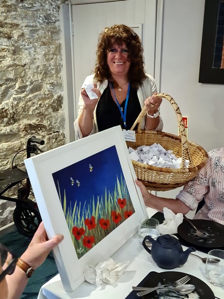 We were fortunate to be given a painting to raffle and 800 raffle tickets were sold. It was won by a visitor from Liskeard.